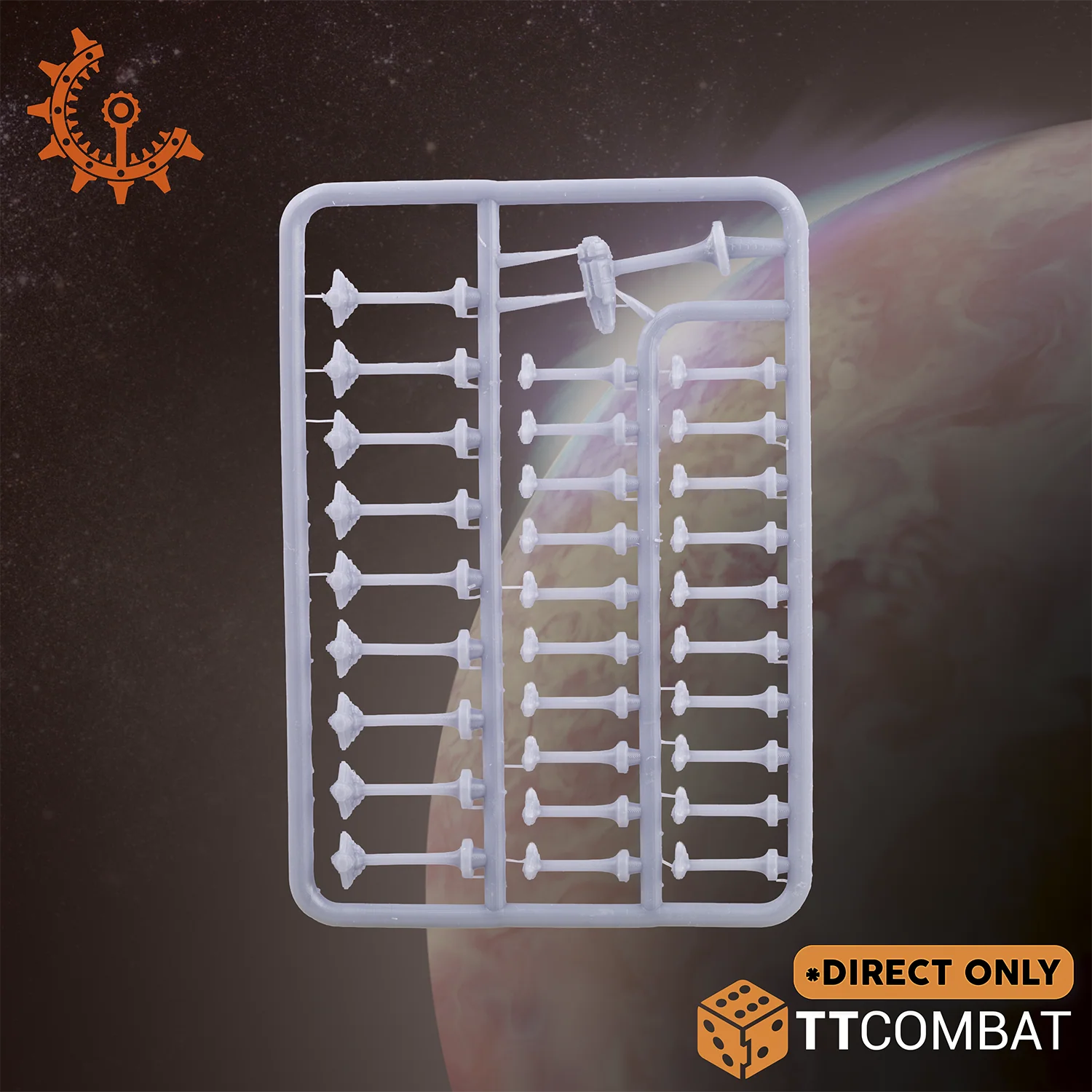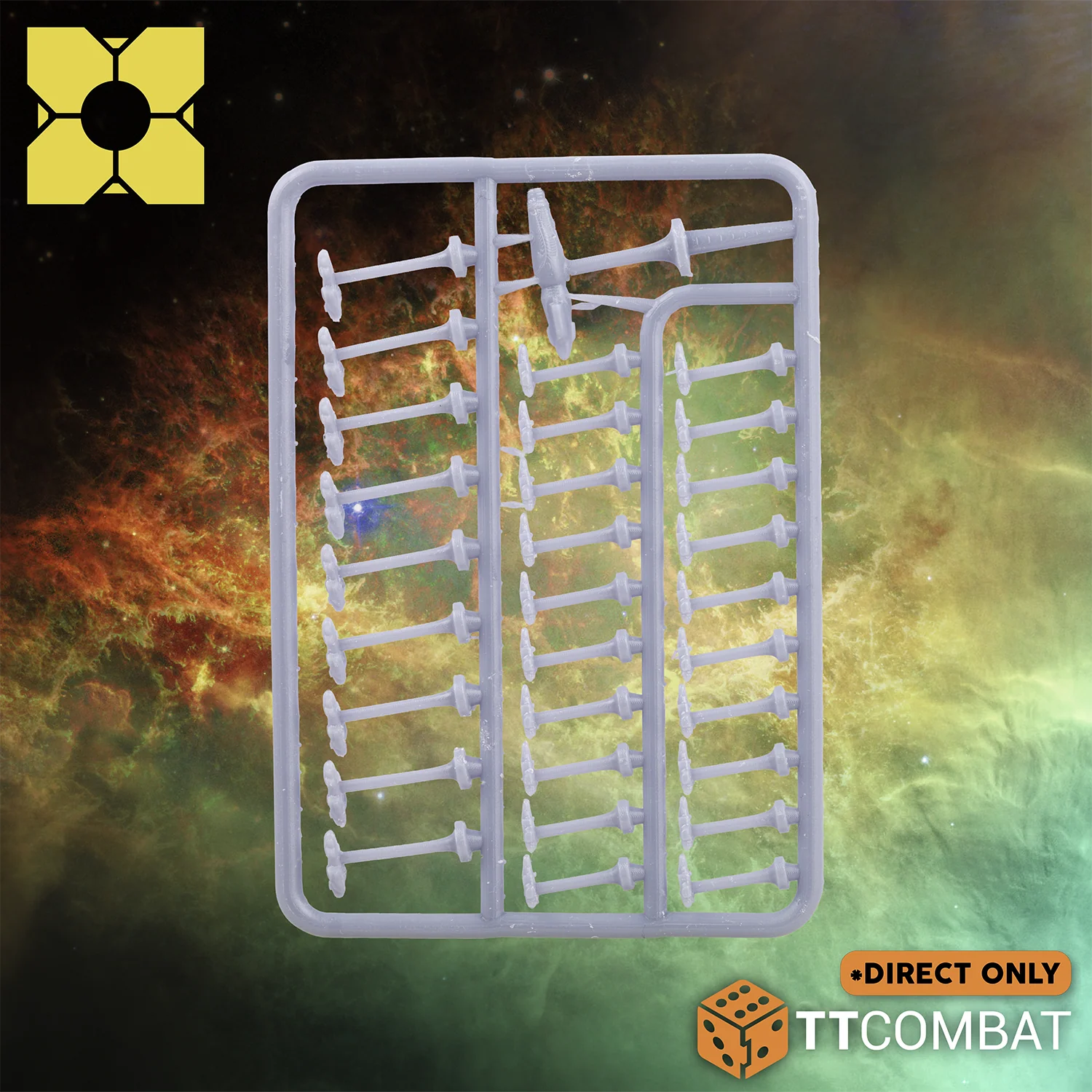 These greatly add to the look and feel of your fleet and are now available with unique designs for each faction. This set of Launch Assets is intended for Scourge players.