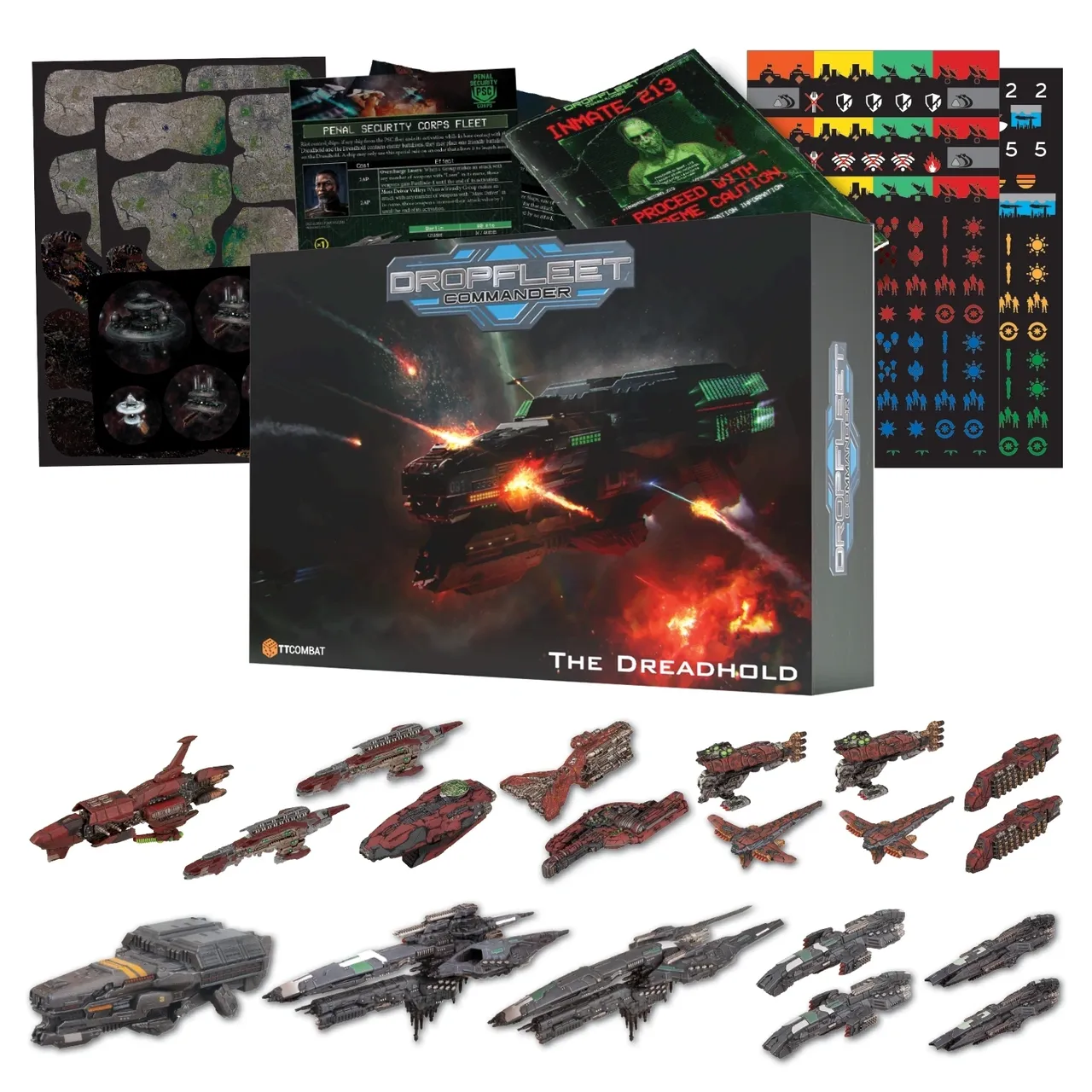 A new experience for Dropfleet Commander 2.0 centres around the monolithic prison ship, the Dreadhold, as criminal scum attempt to liberate Inmate 213 whilst surviving against the deadly PSC escort fleet. In this box are all the rules needed for two Admirals to fight through the Dreadhold campaign, a brutal, high-stakes orbital conflict between the iron-discipline Penal Security Corps (PSC) and the ruthless Eightfold Syndicate. The Dreadhold isn’t just a prison. It’s a fortress in orbit, a maximum security vessel. Inside is Inmate 213, a notorious crime lord of the Eightfold Syndicate, and his people want him out. This won’t be a surgical strike, it’ll be a full-scale prison break in space.