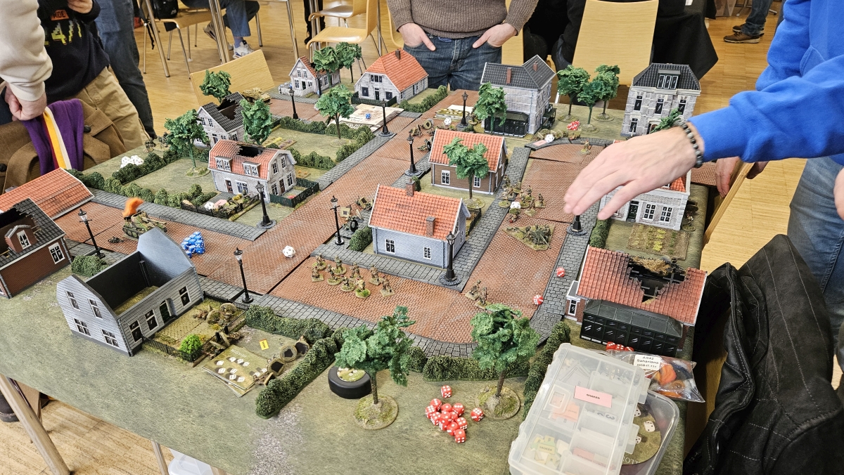 Weiterer Besuch aus den Niederlanden kam mit Benno, der Flames of War in 6mm mitgebracht hatte, sowie die Einladung zur kommenden FIGZ Convention in Arnheim am 1.6.25. Generell spielt er besonders gerne Spiele im historischen und kleinen Maßstab und ist auch der Meinung, dass FoW in 6mm ohne die Regeln anzupassen sogar besser zu spielen sei, als im Original. Mitgebracht hatte er dafür Miniaturen von 2d6 Wargaming, GHQ und Heroics & Ros.