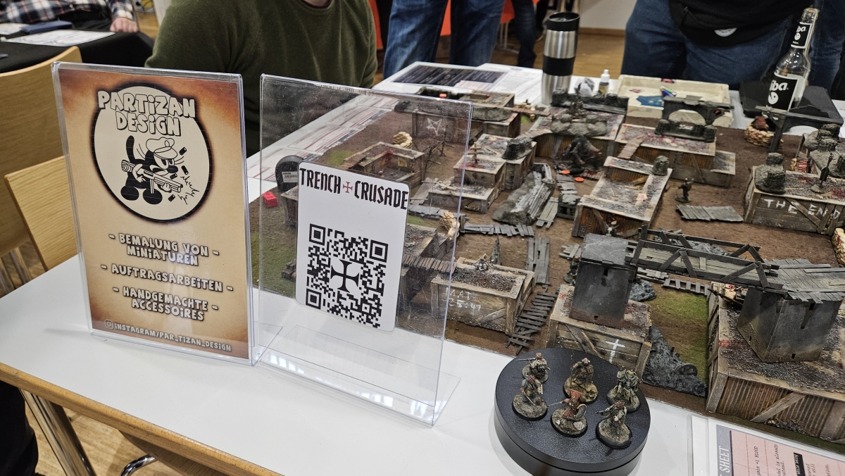 Modern Miniatures waren zwar diesmal nicht mit Stand dabei um ihre STLs und 3D Druck Qualität zu präsentieren, aber dafür privat dabei, um ein paar Spiele anzutesten. So konnten wir dennoch eine Runde quatschen und demnach über aktuelle Projekte berichten. Neben seinem „Schiff als Spielplatte“-Projekt, was aktuell 4,5 kg auf die Waage bringt und als kleine Kampagne auf MMF kommen soll, wird es im Februar Taucher geben. Generell liegt sein Fokus momentan etwas stärker auf humanoiden Miniaturen, aber natürlich sollen Fahrzeuge nicht vernachlässigt werden. Zusätzlich kommen noch ein russisches Haus und Bits die unteranderem auch für Trench Crusade nutzbar sein werden. Das Interesse an diesem Setting ist auch hier groß. Es lohnt sich auch auf Instagram vorbeizuschauen, wo es bald ein Give Away geben wird.