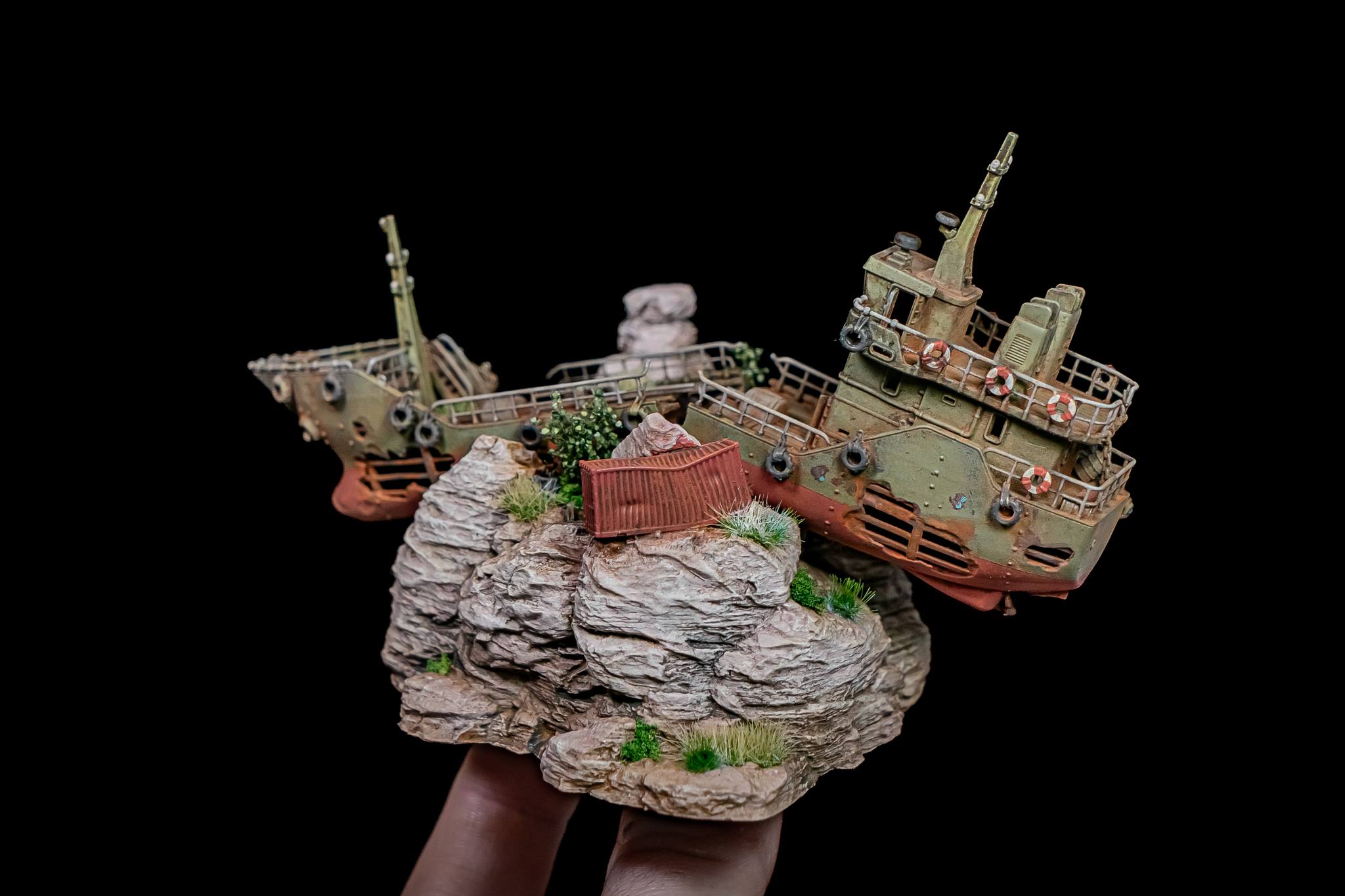 Terrain for the upcoming SWARM ( https://bit.ly/4omJPuT ) now painted! Had a lot of fun with oils and washes and pigments, and the final piece certainly carries the weight of years of abandonment on what once was a lake, or a sea.