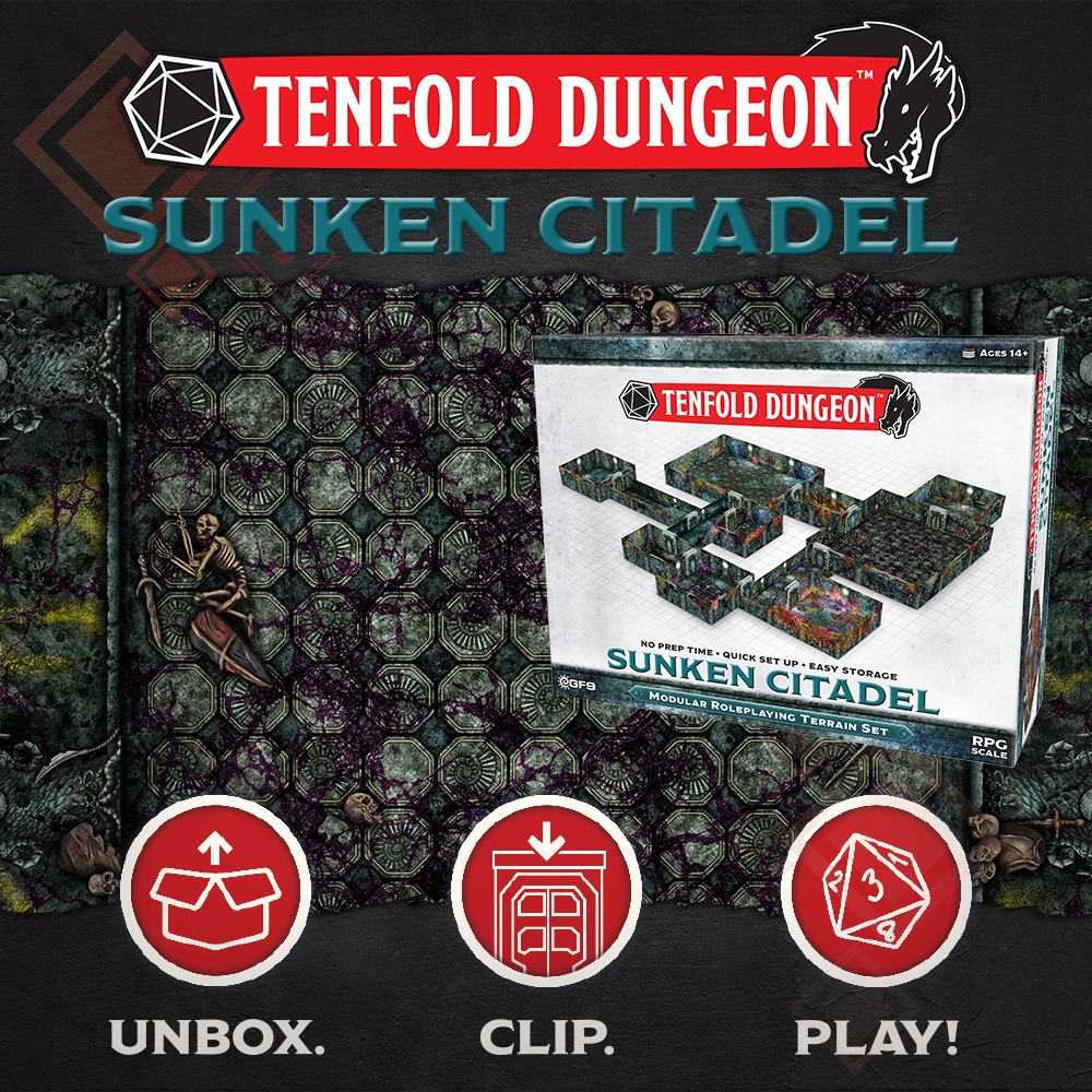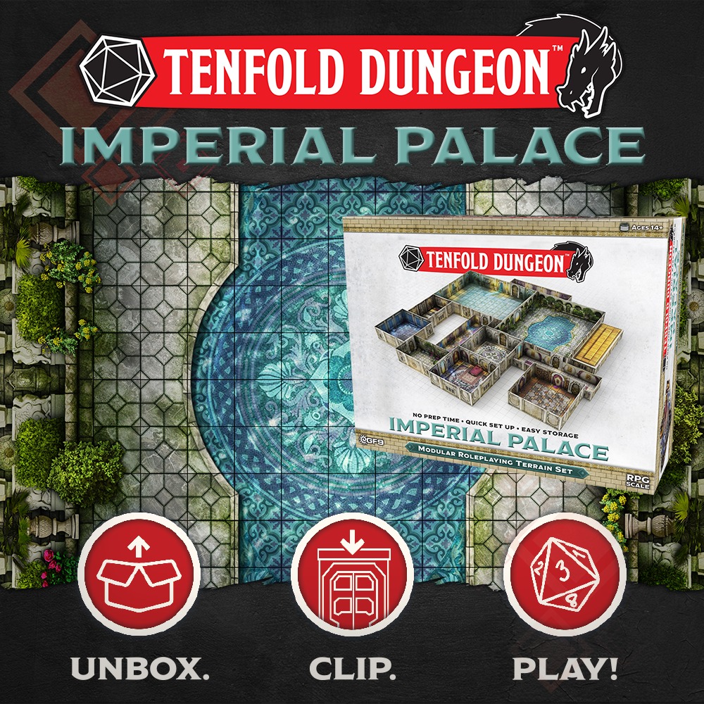Shipping commences w/c 20th October 2025.<><><><><><><><><><>What is Tenfold Dungeon?Tenfold Dungeon is the solution to fully immersive, right-out-the-box 3D settings for your RPGs, battlefields and dungeon crawling games.With amazingly detailed art printed in every box, and 1” x 1” grids discreetly layered into the environment, Tenfold Dungeon provides a high-quality, atmospheric play space for all your tabletop needs. Along with its its compact, lightweight design, it’s never been easier to take your high-octane adventures with you – wherever you go.