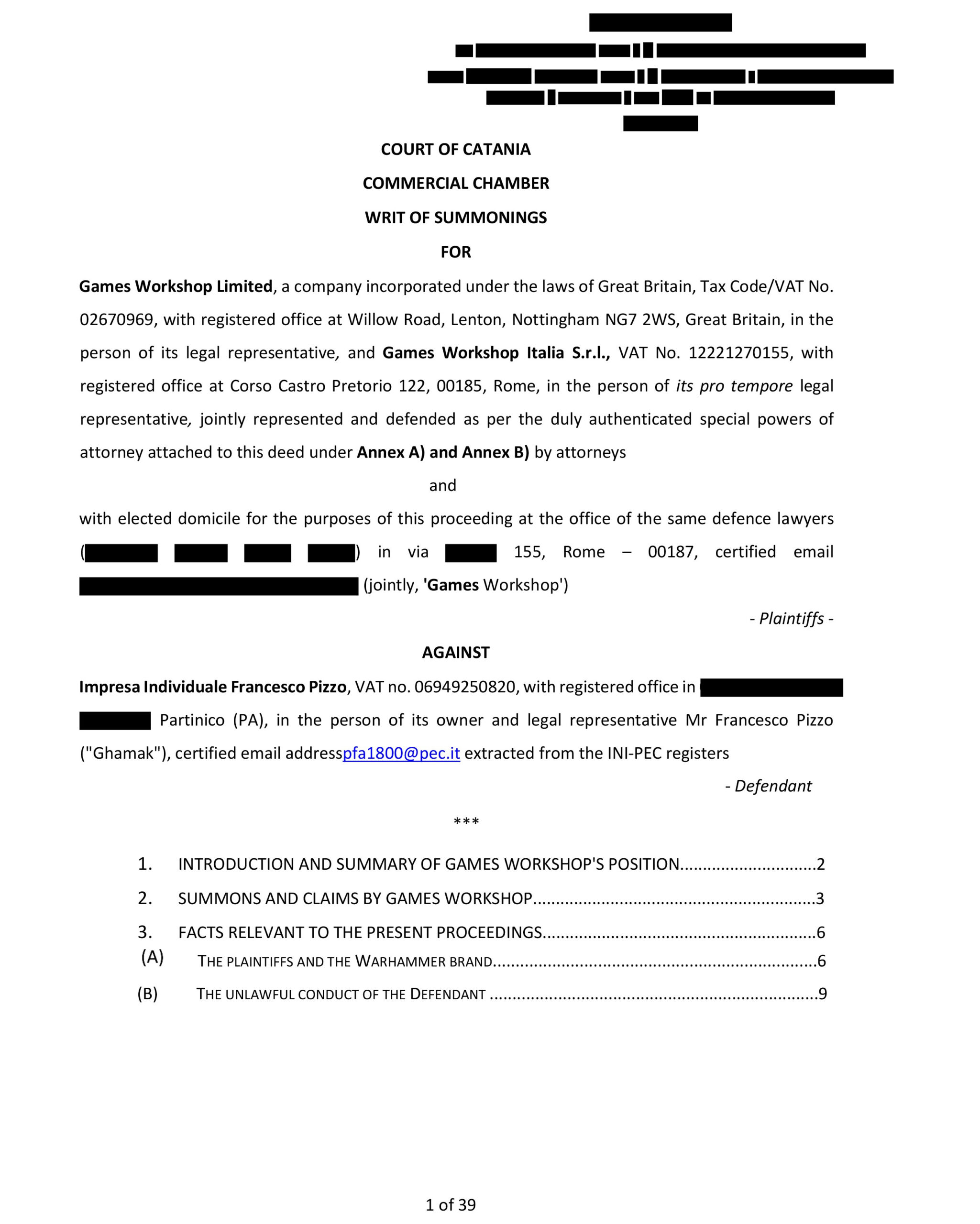 Games Workshop haben vor einem italienischen Gericht Klage gegen Ghamak eingereicht.