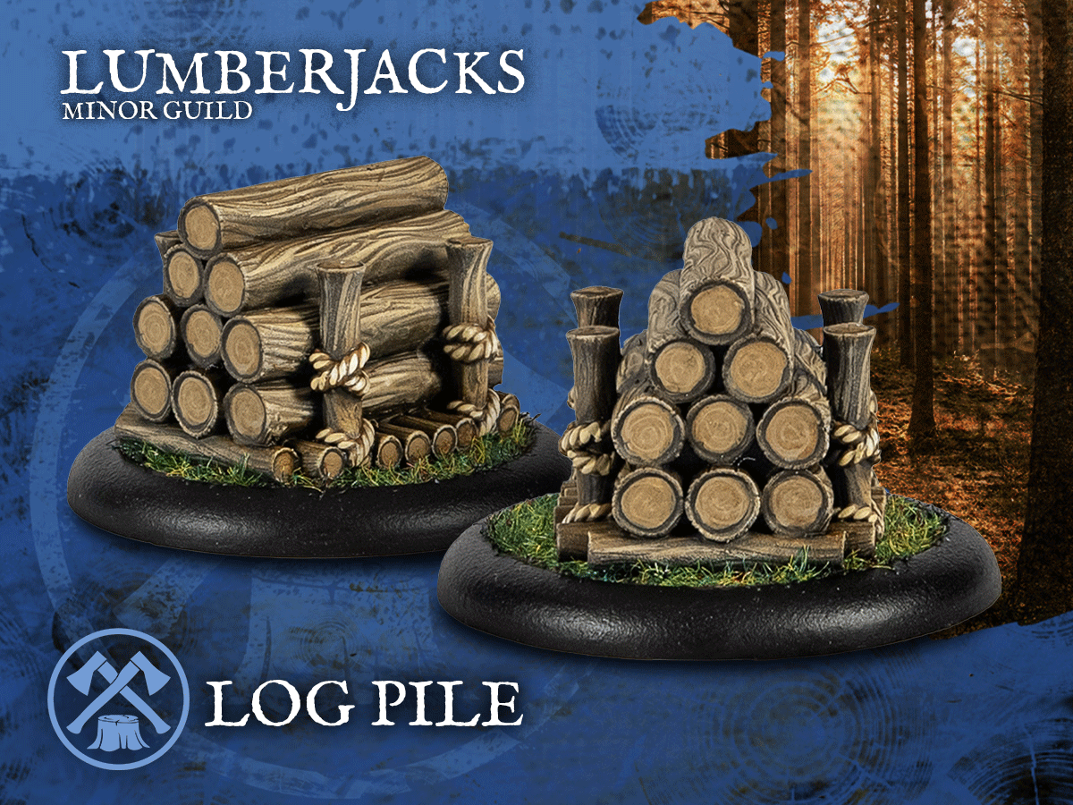 The Lumberjacks Guild introduces a new and unique mechanic to Guild Ball: log piles. As long as Lumberjacks stay close to their log piles, they get multiple benefits: More damage, improved mobility, influence efficiency, and durability. Opposing teams will be wise to try to avoid log piles, or risk being felled themselves by axe and saw.