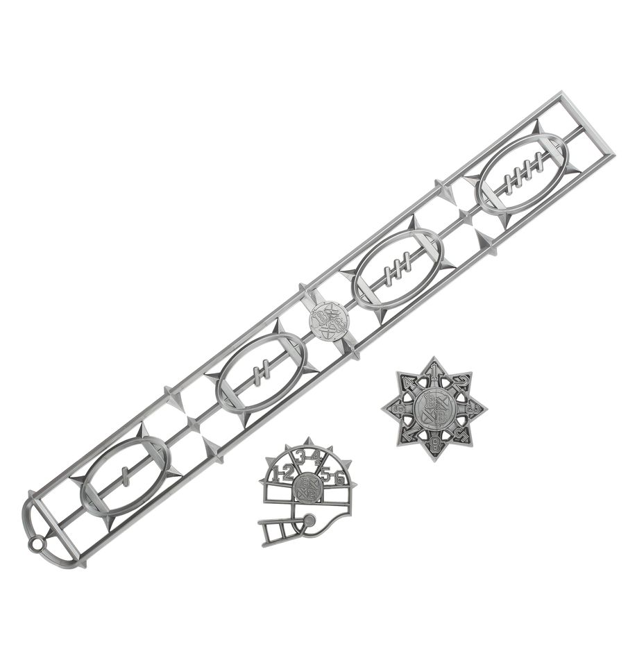 Ebenso findest du im Set ein Paar passender, doppelseitiger Reservebänke. Jede Reservebank weist Spielstandsanzeigen, Zugleisten und Trainingsleisten sowie Reserveboxen, K.o.-Boxen und Boxen für tote und verletzte Spieler auf.