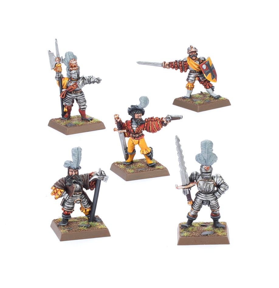 Aus diesem mehrteiligen Bausatz aus Metall und Kunststoff kannst du fünf Hauptmänner des Imperiums bauen, erfahrene Befehlshaber für deine Armeen des Imperiums der Menschen in Spielen von Warhammer: The Old World. Der Bausatz umfasst einen Hauptmann, der mit einer Muskete bewaffnet ist, einen weiteren mit einer Handwaffe und einem Schild, einen mit einer Hellebarde und zwei mit Zweihandwaffen. Sie sind ideal dafür geeignet, deine Streitmacht zum Sieg zu führen und deiner Sammlung noch mehr Charakter zu verleihen.