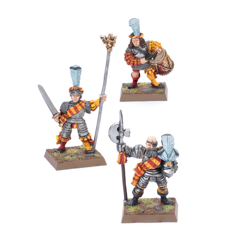 Aus diesem Metallbausatz kannst du drei Kommandoabteilungsminiaturen der Staatstruppen für deine Armeen des Imperiums der Menschen in Spielen von Warhammer: The Old World bauen. In ihm findest du einen Champion der Einheit mit einer eindrucksvollen Hellebarde und einem ernsten, einäugigen Blick, einen trommelnden Musiker und einen Standartenträger. Sie sind vorzüglich dafür geeignet, deine Truppen zu noch größeren Heldentaten zu inspirieren und deiner Sammlung noch mehr Charakter zu verleihen.
