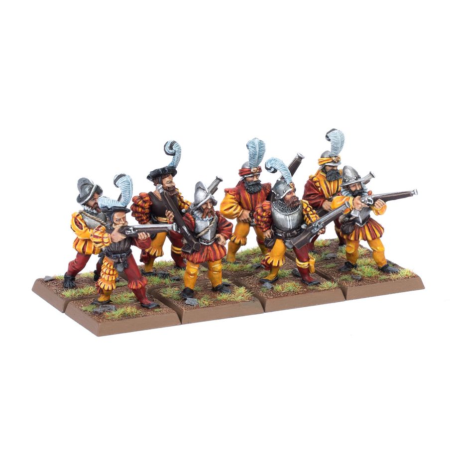 Musketenschützen des Imperiums ziehen mit tödlichen Fernkampfwaffen in den Krieg. Sie fällen ihre Feinde mit Salven verheerenden, zerfetzenden Geschossfeuers aus der Ferne, noch bevor die Nahkämpfer der Armee sie erreichen können.