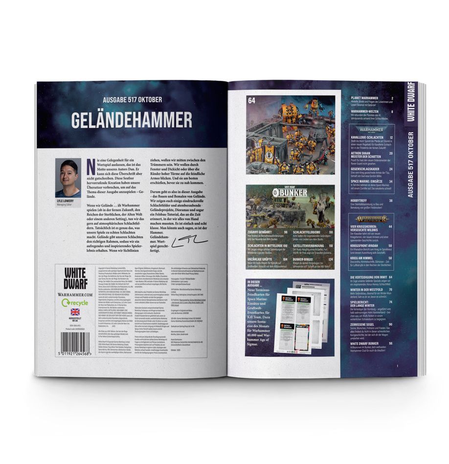 Kriegst du deinen Bingobogen bis Jahresende voll? Schafft es das WD-Team?Jedem Exemplar des White Dwarf 517 liegt zudem ein bedruckter Kartonbogen mit Szenarios des Monats für Warhammer 40.000 und Warhammer Age of Sigmar, Terminus-Feindkarten für das Mini-Spiel Space Marines: Einsätze und Ereigniskarten für Kill Team: Gruftwelt bei.