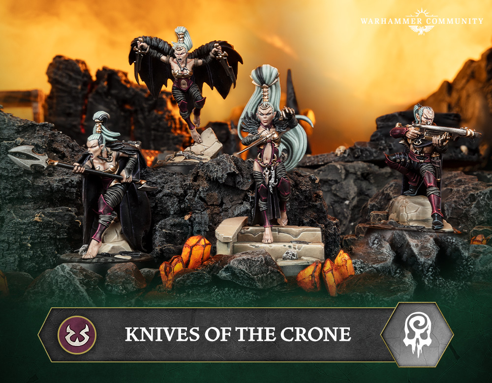 Mit den Knives of the Crone betritt wurde eine neue Bande für Warhammer Underworlds vorgestellt, Aelven Anhänger der prophetischen Göttin Morai-Heg, außerdem kommt ein neues Rivals Kartendeck.