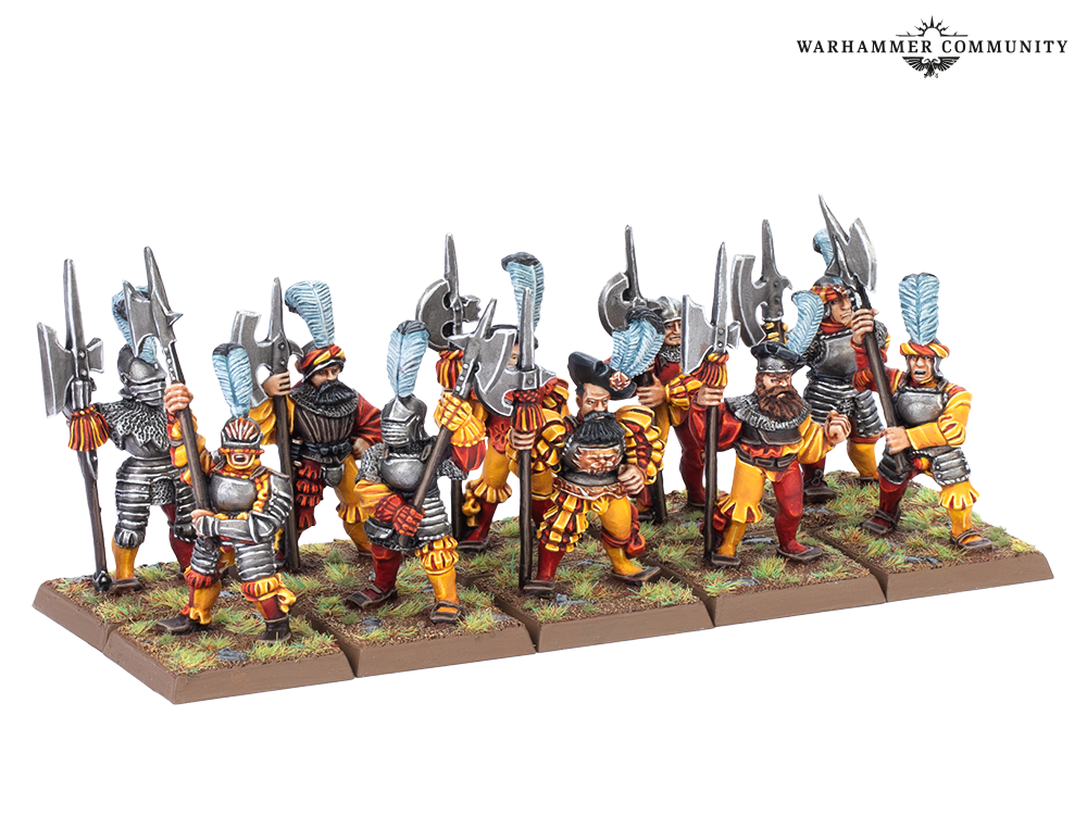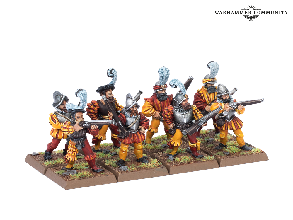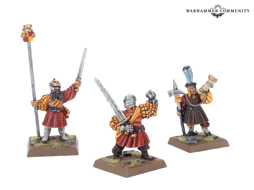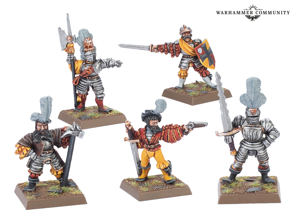 Im Angesicht der wachsenden Bedrohung durch das Chaos hat das Imperium eine Reihe von Staatstruppen aus vergangenen Tagen zurückgerufen, um bei der Verteidigung der Grenzen zu helfen. Ein Set klassischer Hauptmänner des Imperiums enthält fünf Miniaturen aus Metall und Kunststoff, die mit einer Auswahl von Waffen ausgestattet sind. Ebenso erhältlich sind ein Set von 10 Staatstruppen mit Hellebarden aus Metall, eine Kommandoabteilung der Staatstruppen mit Hellebarden, die drei Miniaturen aus Metall umfasst, eine Kommandoabteilung der Staatstruppen, die drei Miniaturen aus Metall umfasst, ein Set mit acht Musketenschützen des Imperiums aus Metall und ein Set aus Bogenschützen des Imperiums, das 10 Miniaturen aus Metall umfasst.