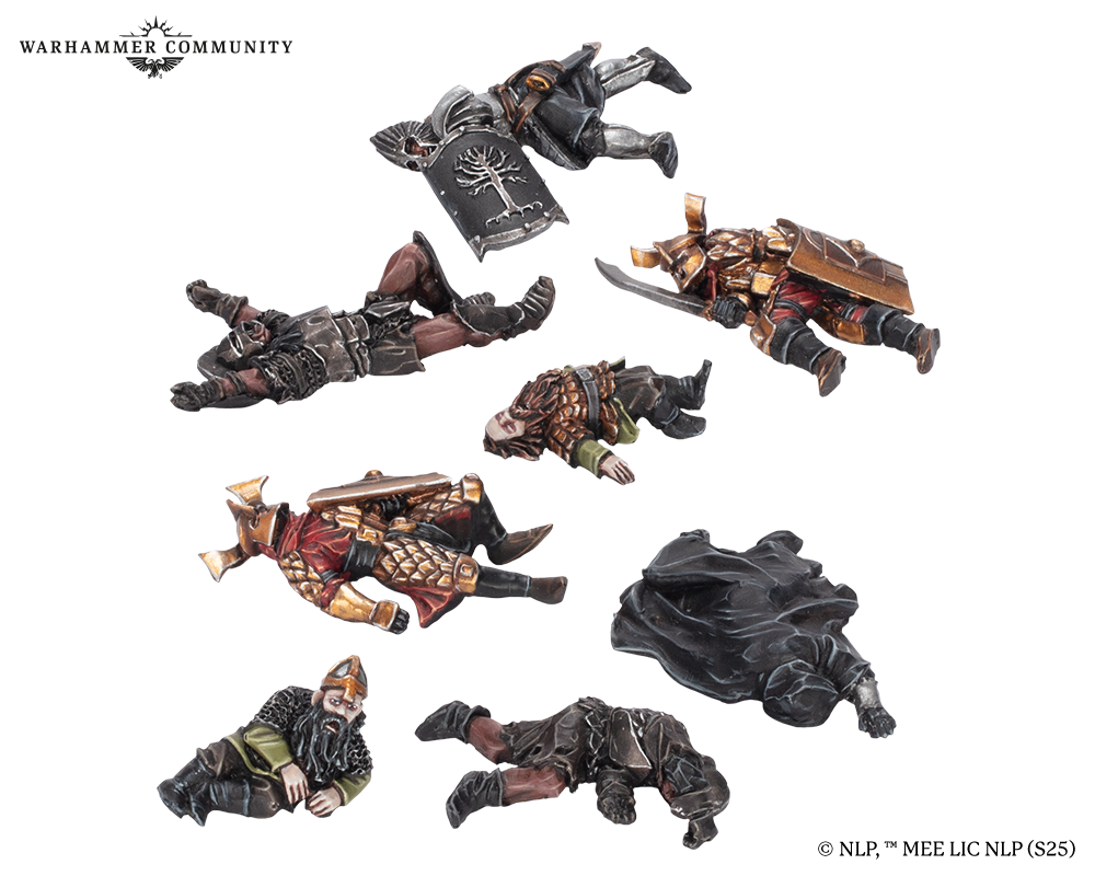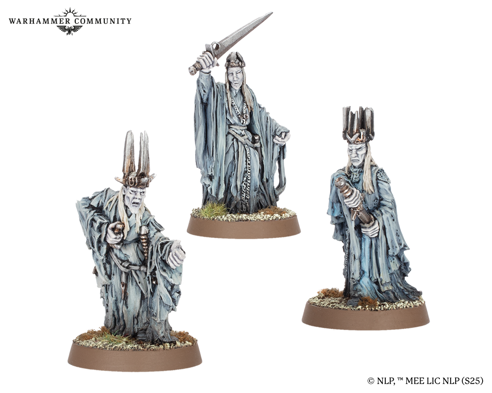 Eine Auswahl klassischer Miniaturen für das Middle-earth Strategy Battle Game kehrt ebenfalls als Auftragsfertigung zurück. Zuerst haben wir Arwen und Frodo auf Arwens Pferd Asfaloth aus Metall. Ihnen folgt ein klassischer Gandalf der Graue in Bruchtal aus Metall, Samweis Gamdschie und Lutz das Pony aus Metall, ein Set aus drei Zwielichtringgeistern aus Metall, ein Set aus sechs Morannon-Orkkriegern aus Metall und schließlich acht Verwundete und Gefallene für Der Herr der Ringe, die eine Auswahl von erschlagenen Krieger umfassen, die du als Dekoration für Bases oder als Missionsziele nutzen kannst.