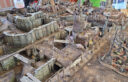 Tim, der die Platte an beiden Tactica-Tagen präsentierte, und ich hatten sie an mehreren Wochenenden gemeinsam geplant und gebaut. Seit Anfang des Jahres hatten wir sie aber mehrfach zwischen uns hin und her transportieren müssen, da sich kaum noch gemeinsame Basteltermine finden ließen. So hatte ich mich zuletzt um die Ranken und die Schattierungen am Boden / auf den Mauern gekümmert, während Tim abschließend noch etliche Stunden in die Deko investiert hatte: Moos- und Grasbüschel, Büsche, Schädel, Deko-Items und jede Menge Getier kamen so noch auf die Platte. Aus den versteckten Deko-Items ein Suchspiel für Kinder mit Süßigkeiten als Preise zu machen, war ebenfalls Tims Idee.