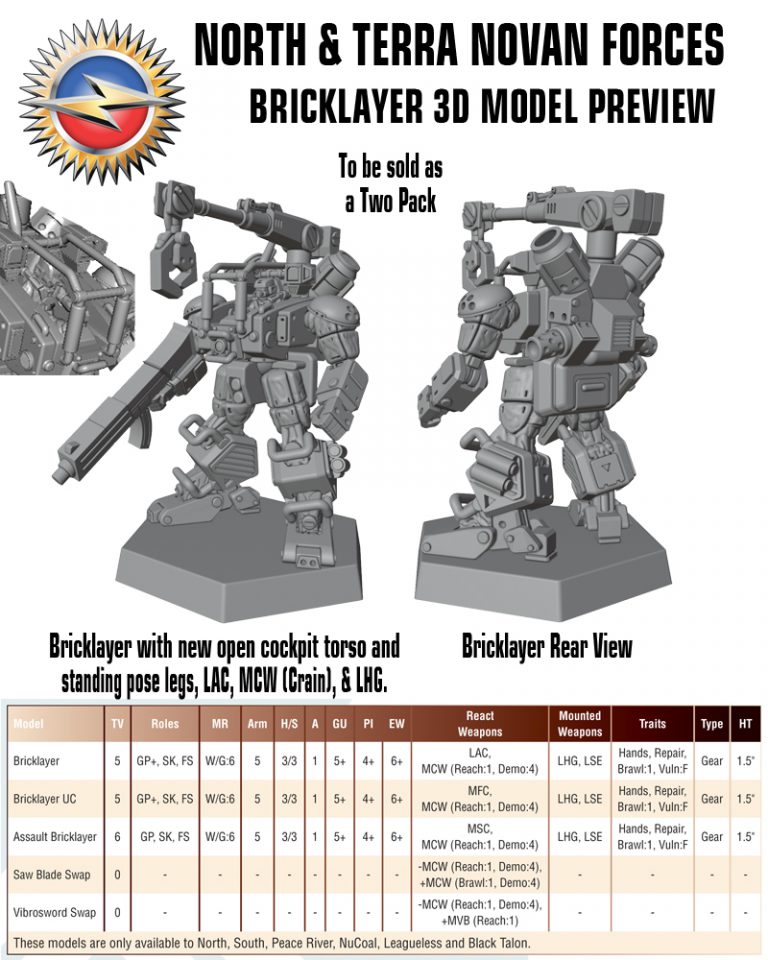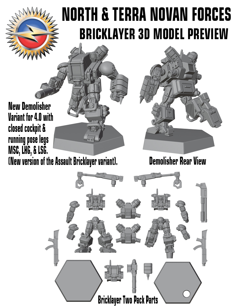 Today we have a preview of the 3D Model for Dream Pod 9’s upcoming November release of the Bricklayer Engineering Gear Two Pack. The Bricklayer was 3D modelled by Duymon, who previously 3D modeled the new Koala and Dingo 3D printed ABS like resin miniature Two Packs, released earlier this month. Checkout preview images for the upcoming Bricklayer with it’s open cockpit torso and its HGB 3.1 model stats. Plus it’s new Demolisher variant with image of all the parts included in the Bricklayer Two Pack.
