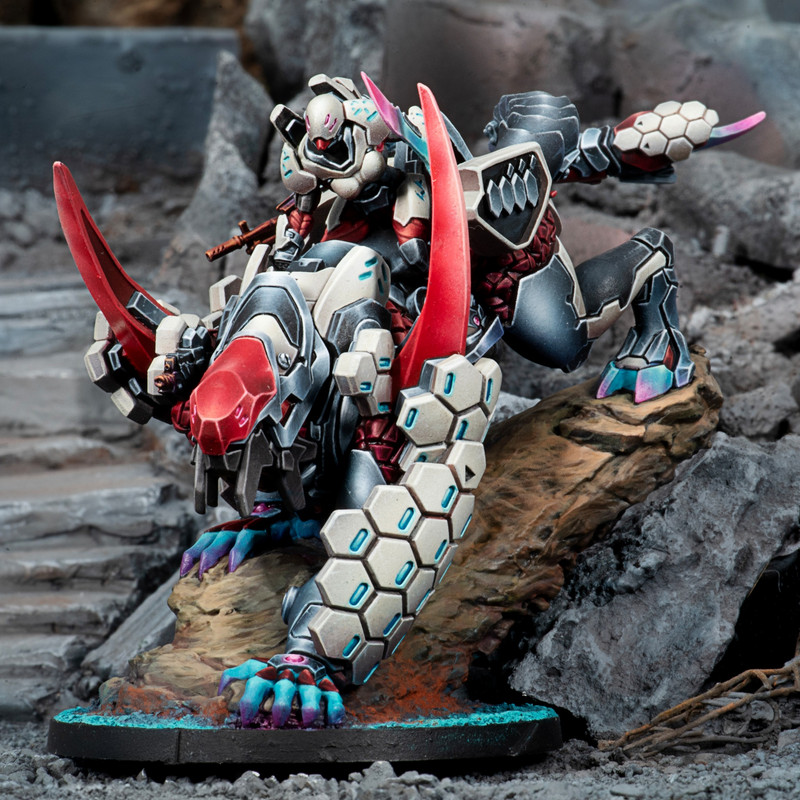 A rampage of frenzied roars and unbridled violence provide the power to sweep away anyone. Thus, Next Wave’s first armored cavalry unit was created, a perfect example of the potential that can be achieved through collaboration with other Hegemonic species, in this case victory achieved with blood-stained teeth and claws.