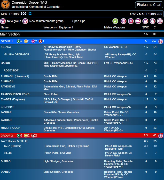 Meine Liste hat ein paar Elemente wie das Remote mit Sensor um spezifisch gegen viele Camo-Token agieren zu können, ist aber als Forward Observer dennoch praktisch für die Mission. Ich greife vorweg, oftmals nicht sinnvoll mit dem Oniwaban spielen zu können und er normalerweise seine Punkte nicht wieder reinbringt. Dies war in diesem Spiel allerdings noch gravierender, da ich ihn quasi komplett vergessen (Platzierung am roten Punkt im kommenden Bild) und somit de facto mit 270 Punkten gespielt habe. Zumindest die Order wäre sicherlich nützlich gewesen.