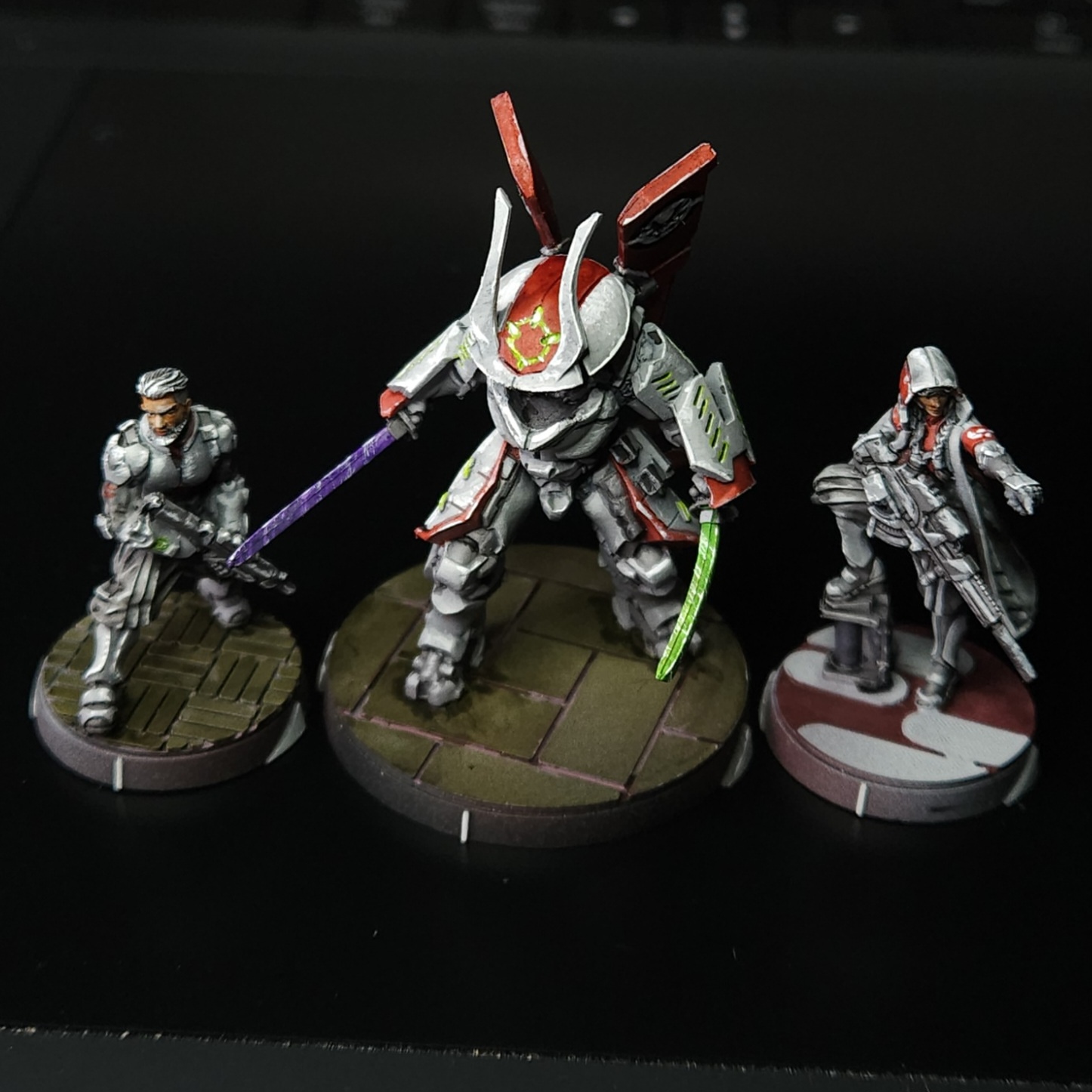 Mittlerweile konnte ich weitere Infinity-Partien bestreiten und bin bei 300 Punkte Spielen mit vollen Profilen angelangt. Dabei habe ich mich weiterhin auf JSA Oban fokussiert und bleibe bei den bisherigen Miniaturen und Profilen mit leichten Änderungen, um es mir nicht schwerer als nötig zu machen. Das bedeutet gegebenenfalls suboptimale Listen, sollte aber dennoch einen besseren Lerneffekt ergeben.