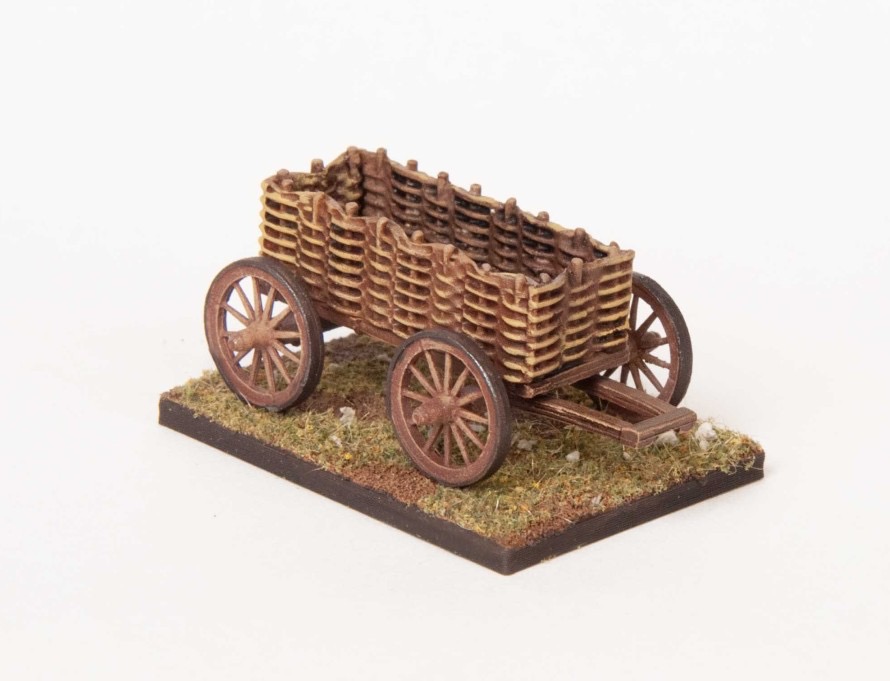 These were very commonly used in laager around the camp, to provide a temporary field fortification, or can just be used as part of the baggage camp. It’s just the wagon, with draft pole removed. It fits on a 40mm base.