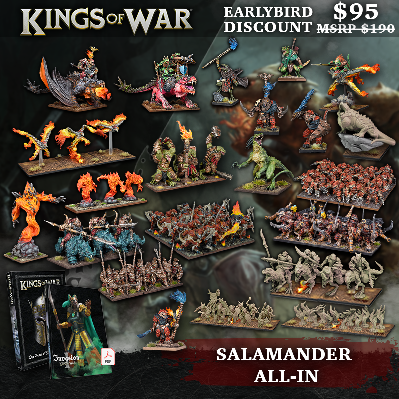 We have been threatening a full digital STL army for Kings of War all year – and the good news is if you are a home-printer you can get an all-digital Salamander army ready for a 4th edition game this week too! On Wednesday, via the Vault site we will have a huge All-In bundle (including all the pdf version of the rules) and all the models for the launch of Salamanders.