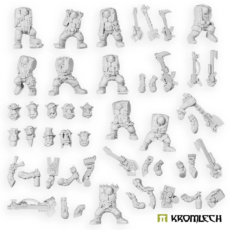 This set of high-quality resin parts is enough to make an Orc Rokkerboys Squad consisting of ten miniatures – Orcs armed with choppin‘-n‘-shootin‘ Guitars, as well as other musical weapons and accessories. Various designs of heads and bodies included. All parts in this set are interchangeable.