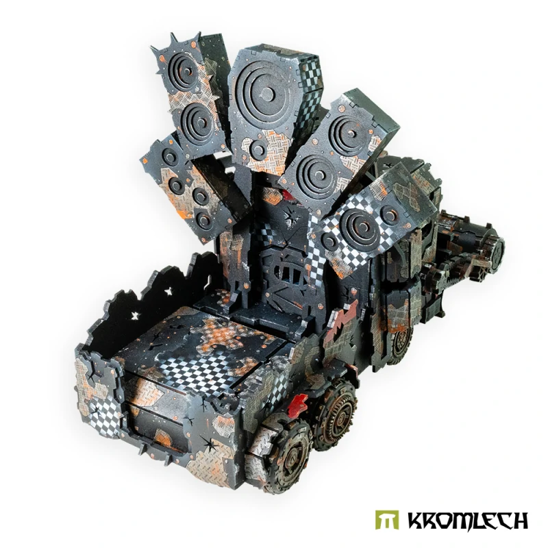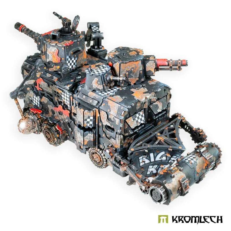Every successful Orc band journeys in a Tour Bus. As for the Orcish standard, even such a standard vehicle needs to be equipped with plenty of weaponry. In fact, due to their size, mass, and numerous spots for modifications (both battle-driven and „musical“), Orc Tour Buses are lately used more and more by Greenskins on battlefields. With deadly effects.