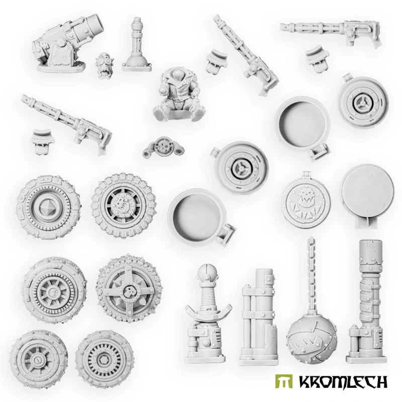 – resin parts: an Orc Rokker Driver, Smashin‘ Ball, wheels, hatches, guns, and cannons,
