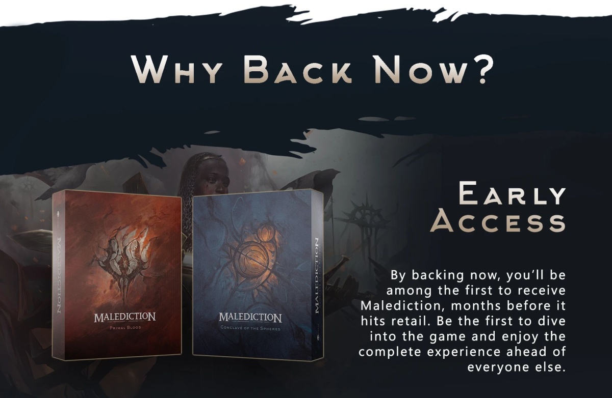 Malediction Limited Edition is an exclusive version of the game, available only during this campaign. Each faction is strictly limited to 1,800 units, making it a unique collector’s item. The only differences in this edition are a holographic seal on the packaging and a special emblem on the cards, distinguishing it from the standard version.This is your only chance to own this exclusive edition—once the campaign ends, it won’t be available again!The Faction Box includes everything one player needs to enter the Malediction! Each box comes with over 80 cards, standees representing all units from your faction, highly detailed punchboard terrain, and all the necessary game components to host a match and track your resources. Choose any faction that suits your style and challenge your foes to claim powers everlasting!On this Pledge you will get: