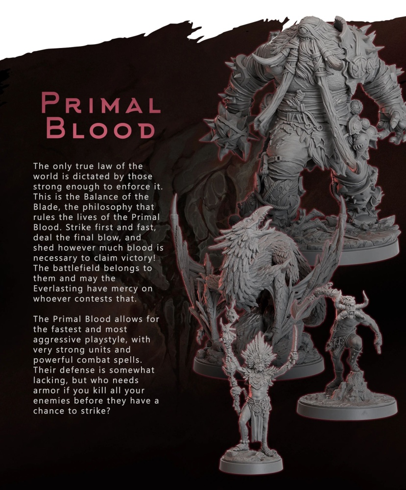 The Primal Blood allows for the fastest and most aggressive playstyle, with very strong units and powerful combat spells. Their defense is somewhat lacking, but who needs armor if you kill all your enemies before they have a chance to strike.When the monstrous titan charges, the earth splits open, mountains crumble, and the world trembles at the sound of his footsteps. Enabling the most aggressive playstyle, he will crush your enemies underfoot before they realize what hit them.