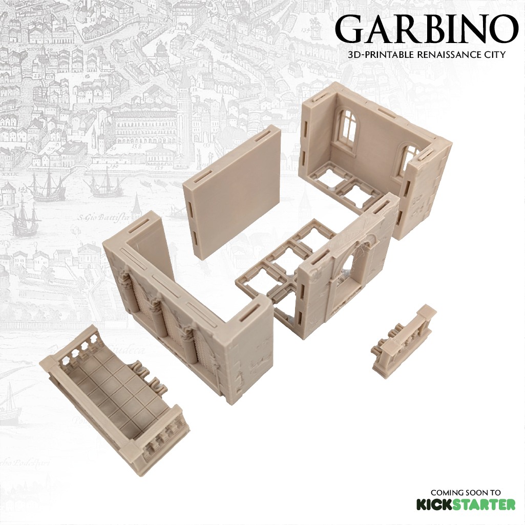 Bring the Italian Renaissance to Your Tabletop!Step into the streets of Garbino. Our newest range of 3D-printable scenery is coming soon to Kickstarter, blending the timeless beauty of Italian architecture with cutting-edge modularity.Customize Everything: Detach floors, mix facades between different buildings, and swap out stairs or balconies on the fly. Even the chimneys are interchangeable!