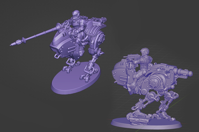 These fellas are cooking along. The striders are done, engineered, and the first supports are test-printed. Unfortunately, they’re pretty oversupported, and I lost a few strider feet while removing them – I’m going to do a second support pass to try and make this process a bit less painful. Riders are pretty much posed, and I’ll soon be sculpting the detail bits of the uniforms. If I have time after all that, I’ll see about adding a few extras to the kit.