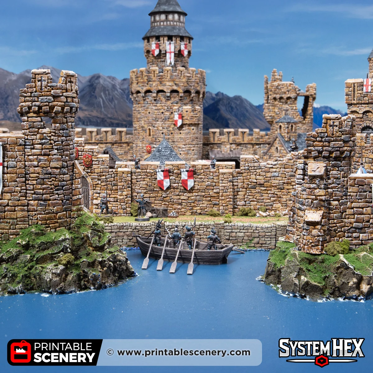 Printable Scenery präsentieren neues Gelände für Throne and Ash: Tower Bridge Connectors, Ruined Small Round Tower und Castle Flags.