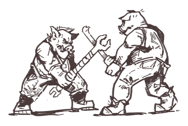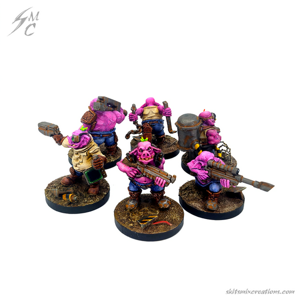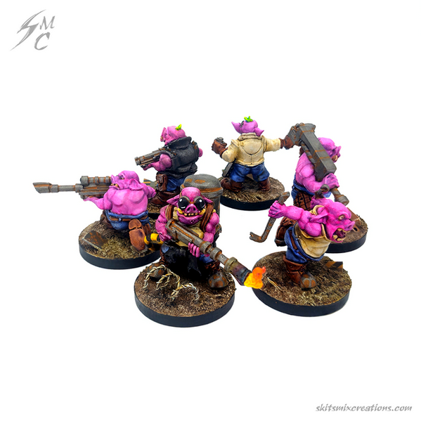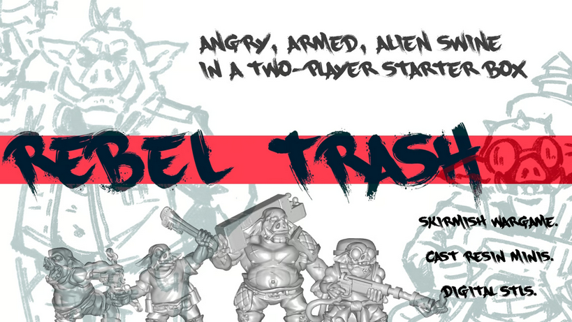 Rebel Trash is a skirmish wargame of angry, armed, alien swine. Two players take command of enemy work crews battling, landing pad by landing pad, on a once-prosperous, now-decrepit space port on a far-flung planet. Alex Huntley, the genius behind Warp Miniatures, has crafted eight detailed digital sculpts for the game. Slade Stolar, the dimensional anomaly that spawned Scablands Press, is creating a lightweight living rules document. We want to bring this game to you in a two-player starter box.