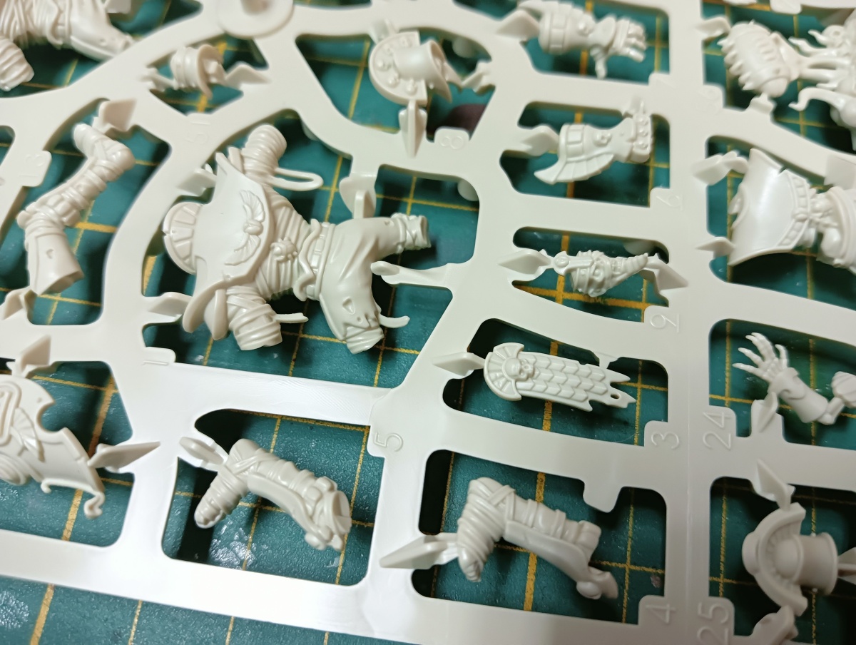 Der Zusammenbau war größtenteils problemlos. Nur die Flügel an den Sandalen, der Gruftkönige-Werfer waren etwas unangenehm beim Säubern und Zusammenbau, da sie so klein waren.
