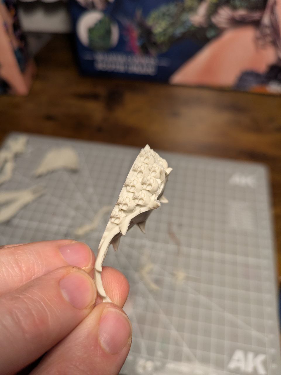 Besonders gut gefällt mir sein Base-Element, eine Art roter Teppich aus einem Blumenblatt, das über einen Schädelberg drapiert daher kommt, obwohl man dadurch natürlich ein Stück weit in der individuellen Base-Gestaltung eingeschränkt wird.