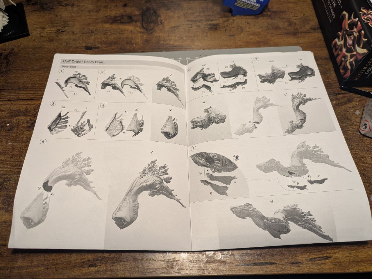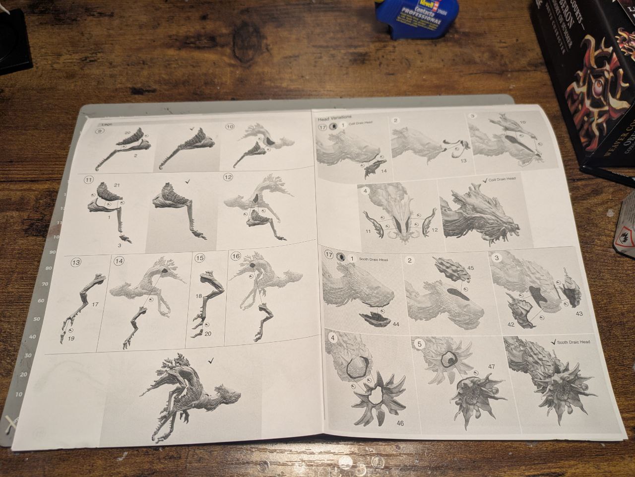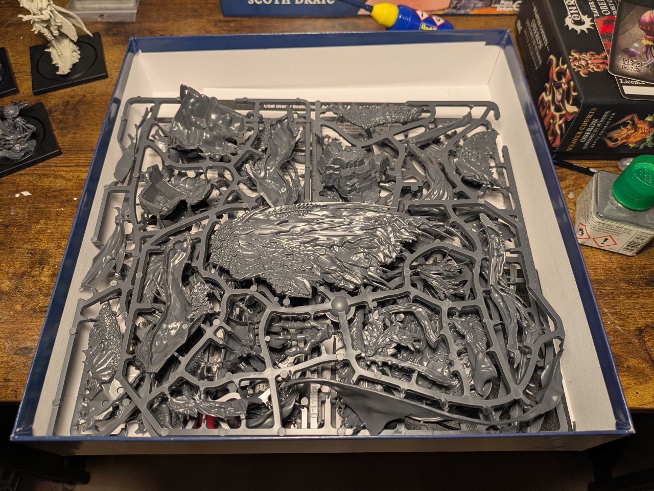 Kommen wir zu dem Modell, auf das ihr mit Sicherheit alle gewartet habt: Die Draics sind die ersten Großmodelle für die Weaver und sind optisch besonders imposant. Vom Fluff her stellen sie eine Art Echo der echten Drachen dar, die plötzlich aus der Natur von Eä geformt wurden. Den Bausatz gibt es in zwei Varianten. Ich habe mich hier für den Scoth Draic entschieden.