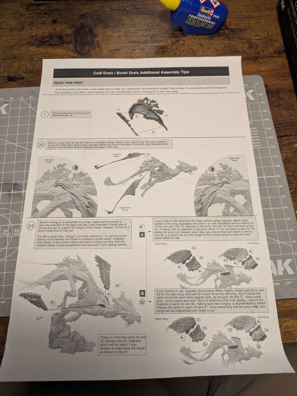 Das ist beim Draic der Weaver leider nicht der Fall. Dass das Modell schwierig zusammenzubauen ist, ist das eine – friemelige Kleinteile, große Flügel mit viel Wucht, die es mit viel Geduld zu kleben gilt – das sind alles vertraute Probleme bei Modellbausätzen. Und die Erklärungen aus der beigefügten Broschüre helfen dabei tatsächlich enorm.