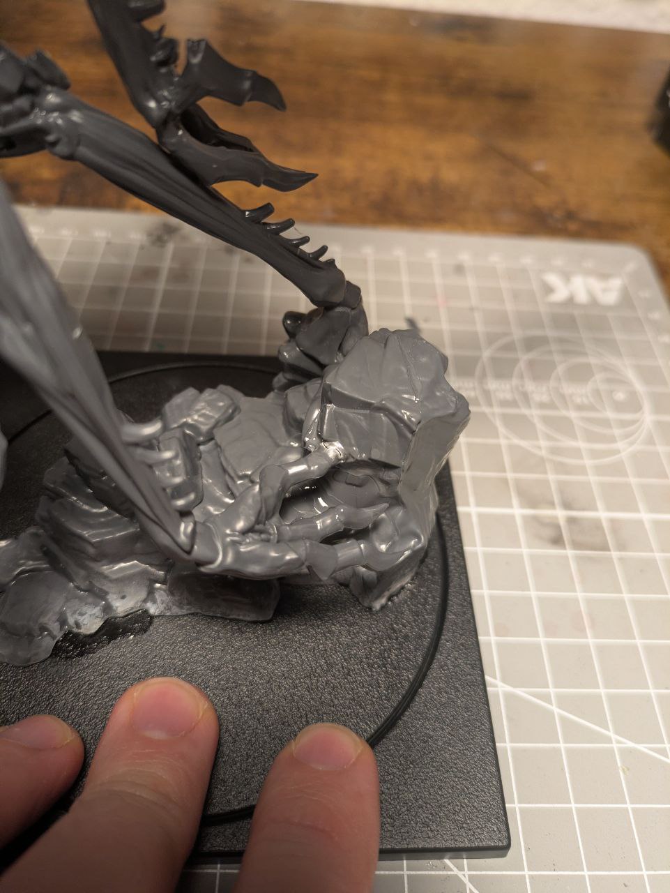 Und selbst, wenn man es mit der Hand vom Umfallen abhält, wie ich es für die Bilder oben getan habe, reißt es die kleinen Klebestellen an der Base, die den großen Körper des Draic ohnehin kaum tragen können, quasi sofort wieder auseinander.