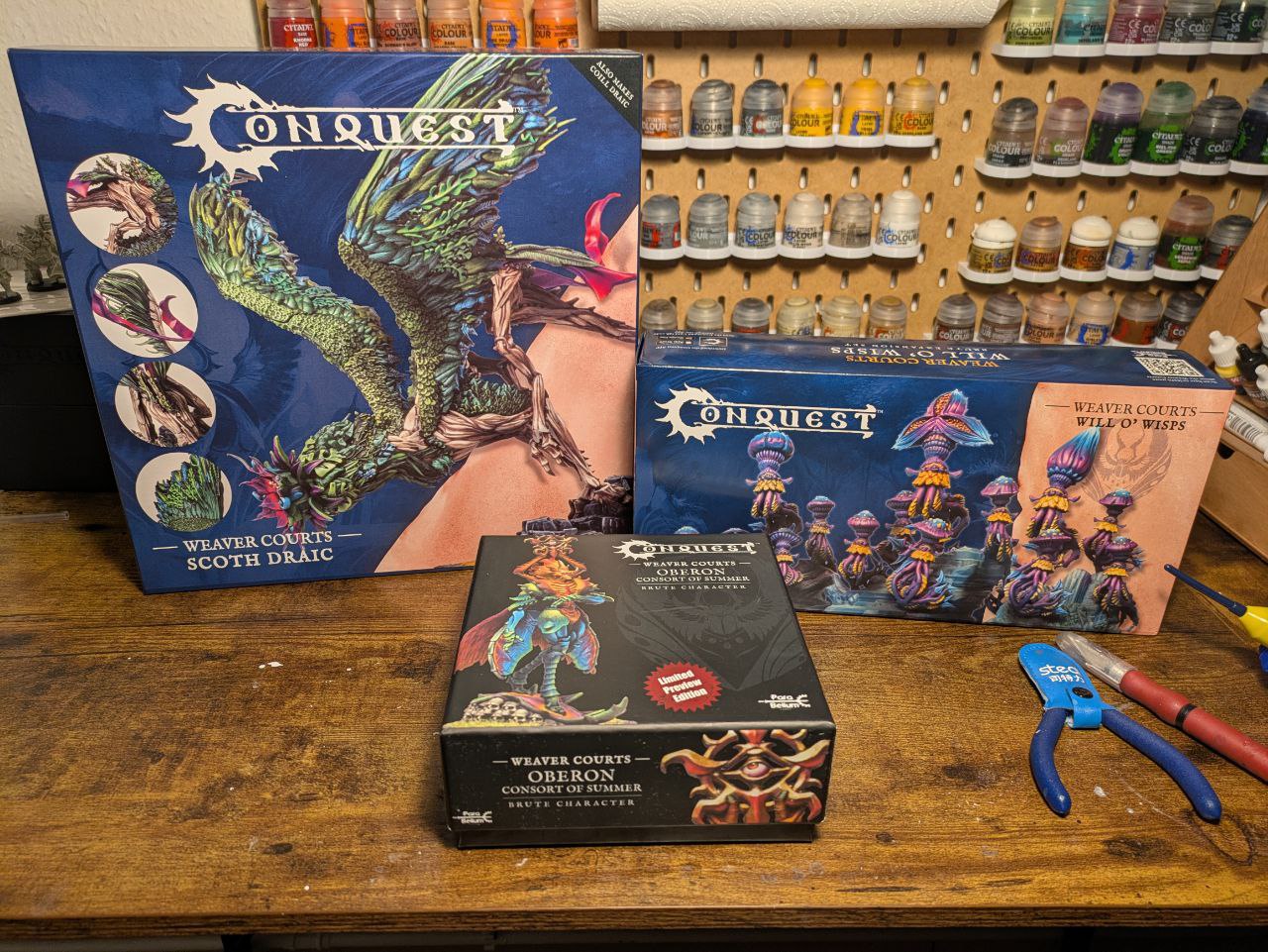 Heute dreht sich bei uns wieder alles um die neueste Conquest-Fraktion, die Weaver Courts. Nachdem wir uns zuletzt in zwei Teilen erst die Infanterie und dann die Brutes und die Kavallerie der Conquest-Waldelfen angeschaut haben, geht es diesmal mit dem ersten Großmodell der Fraktion und einer leichten Vorhut-Einheit weiter. Aber zuerst holen wir etwas nach und schauen uns das Preview-Modell der Fraktion an.
