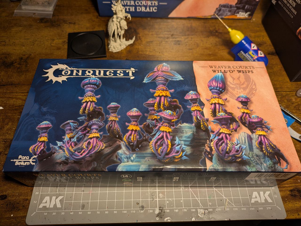 Vom Design her gefallen mir die Will o’ Wisps sehr. Ich bin ja generell sehr empfänglich für Conquests düstere Version klassischer Mythologien, und die Weaver Courts haben es mir vom Fluff und von der Optik her besonders angetan. Leider weist auch der zweite Schwung Weaver-Modelle, die ich auf dem Tisch hatte, ein Problem auf: Die Umsetzung der Bausätze ist nur bedingt gelungen.