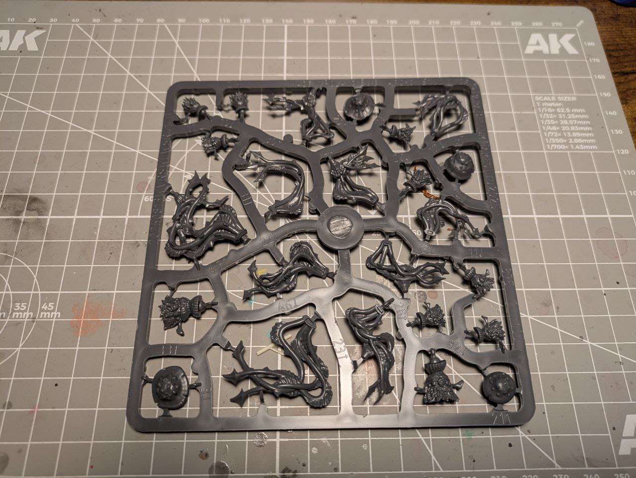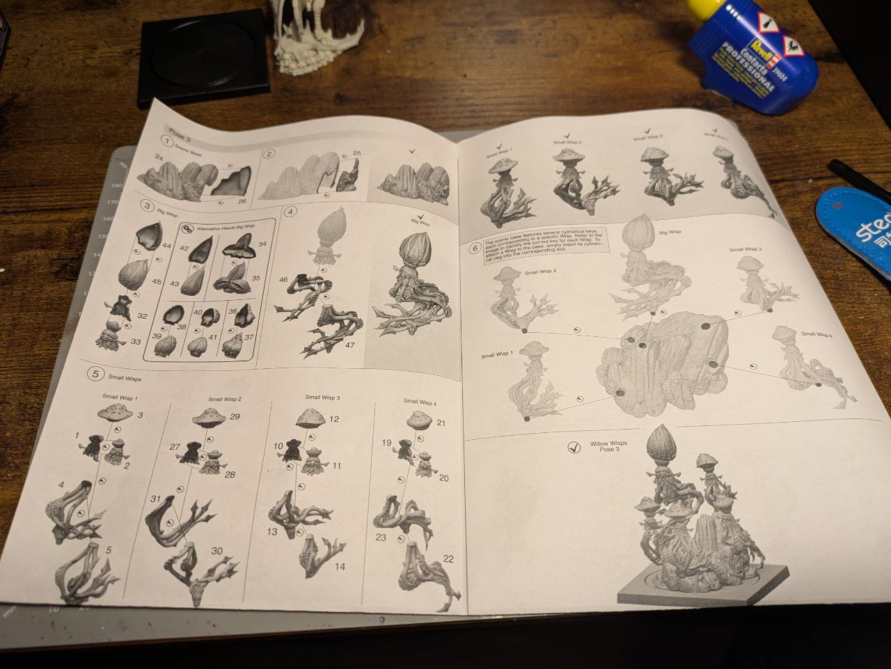 Tendenziell sind die Will o’ Wisps nicht so anstrengend zu bauen wie die Mottenreiter aus dem Starter-Set, und doch kommt bei mir beim Bauen der Modelle keine Freude auf. Dafür sind die einzelnen Modelle meiner Ansicht nach zu repetetiv und kleinteilig: Jede Brute Base besteht aus fünf Wisps, die alle jeweils aus vier oder fünf Teilen bestehen – dazu dann noch die Scenic Base, die auch wiederum aus drei oder vier Teilen bestehen, mit nur minimialer Variation oder Möglichkeit zur individuellen Gestaltung.