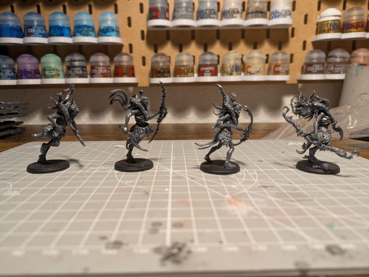 Doch auch hier muss klar sein, dass die Skirmisher dafür da sind, Seed-Marker zu verteilen und der sonst eher elitären Weaver-Courts-Fraktion ein bisschen Tischpräsenz zu ergattern. Dabei helfen 120 Punkte für eine Vierer-Einheit nur bedingt, doch dafür kostet jeder weitere Skirmisher nur noch 20 Punkte.
