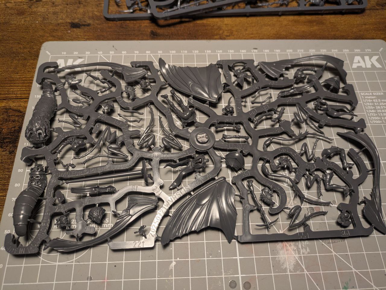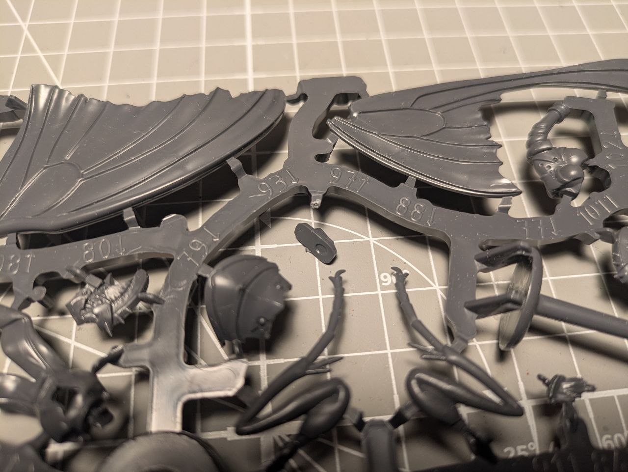 Zu bemerken ist auch, dass die Teile mitunter wirklich sehr klein und die Verbindungen zum Gussrahmen nicht immer stark sind. So ist ein Teil in meiner Starter-Box fast verloren gegangen, weil es sich scheinbar beim Transport aus dem Gussrahmen gelöst hat. Das hätte sehr nervig werden können, aber ich hatte Glück und habe das Teil beim Herausnehmen der Gussrahmen aus der Box aufgefangen und beiseite gelegt.