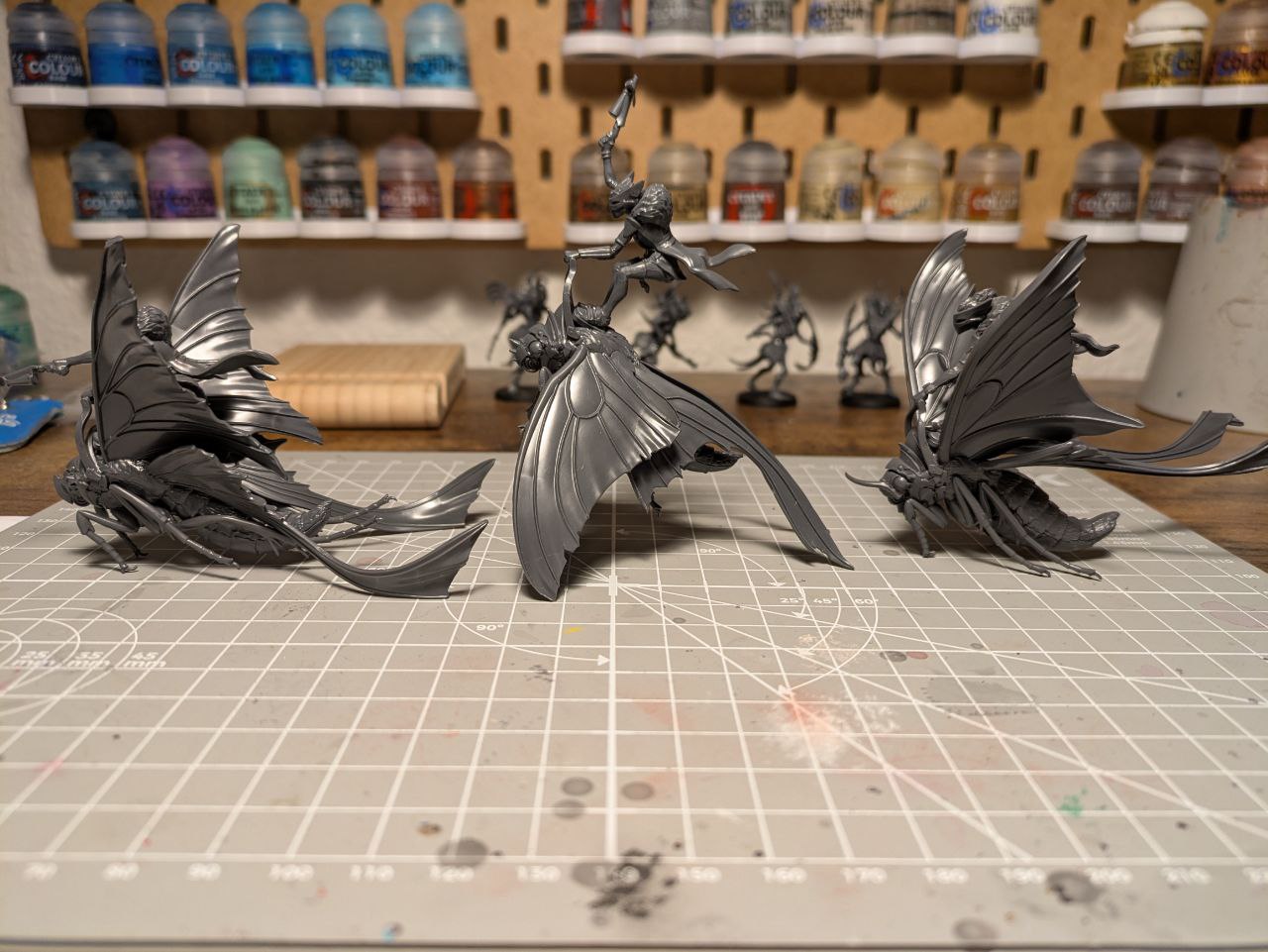 So sehen die Mottenreiter der Ciannir Riders dann aus, wenn man sie fertig gebaut hat. Ich habe sie für die leichtere Bemalung und den Transport noch nicht auf ihre Flying Stands geklebt.