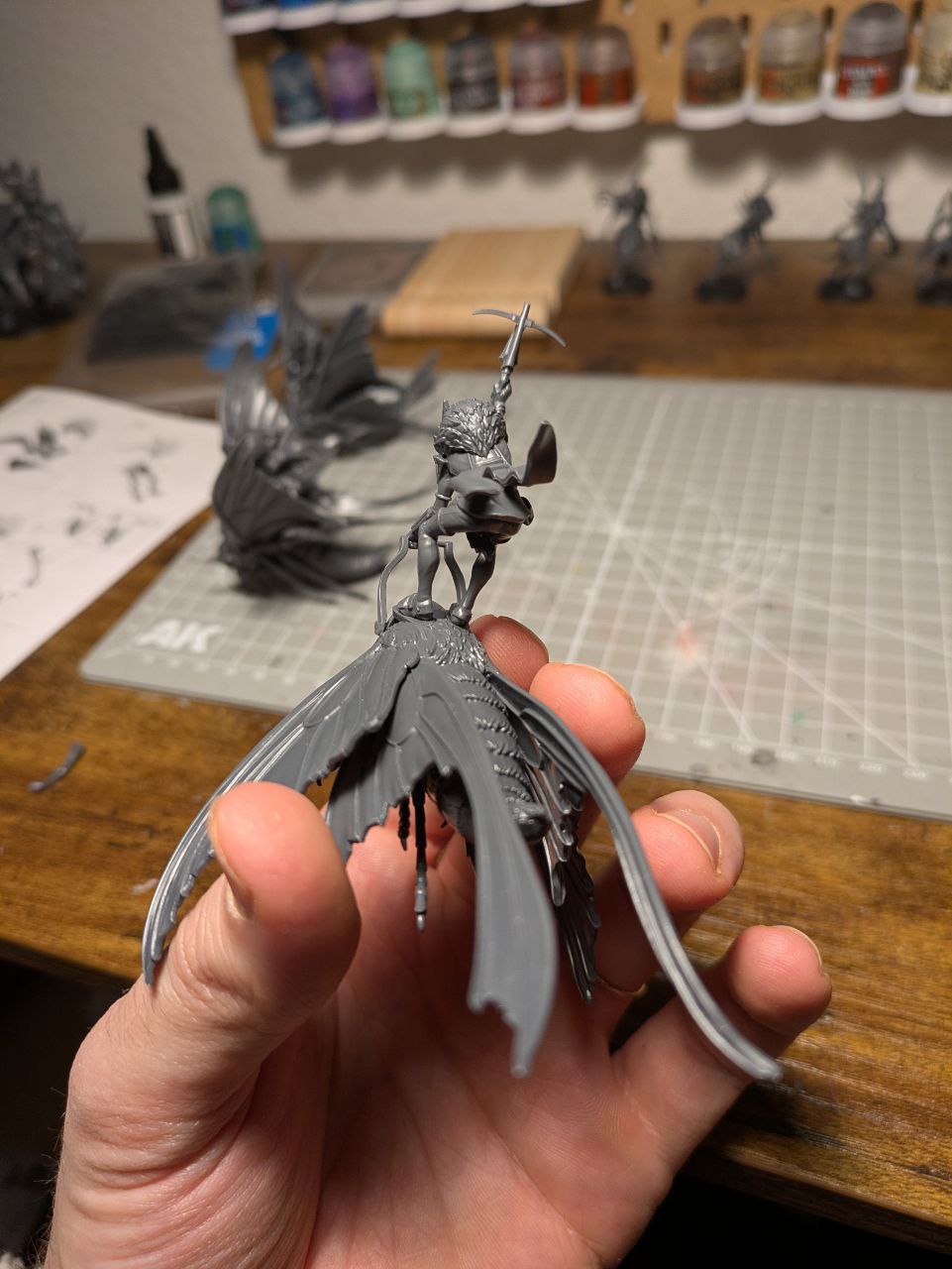 Die Kavallerie der Weaver ist definitiv kein Bausatz, den ich einem Anfänger oder einer Anfängerin im Hobby ohne Vorwarnung in die Hand geben würde. Und das alles sage ich wohlgemerkt, obwohl ich die Modelle noch nicht auf ihre Flying Stands geklebt habe – ein Schritt, der in der Vergangenheit schon öfter für Ärger gesorgt hat, wie bei dem Quatl der W’adrhûn, den ich mir hier angeschaut habe.