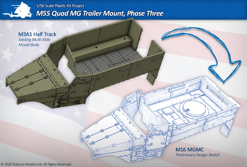 Our first Weekend Teaser for December – Phase Three of our M55 Quad MG system has begun! We are transforming our M3A1 half-track chassis into an M16 MGMC body!