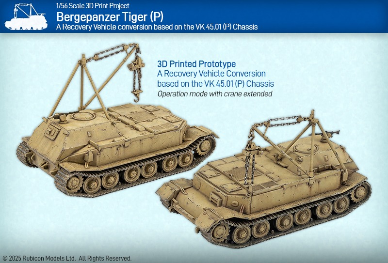 Our Third Weekend Teaser for December… A private 3D print commission has turned commercial with the conversion of the VK 45.01 (P) chassis into a recovery vehicle designated as Bergepanzer Tiger (P). Only three of these were built during WWII. The VK 45.01 (P), also informally known as the Tiger (P) or Porsche Tiger, was a heavy tank prototype designed by Porsche. Will share more info on this side project as it progresses!