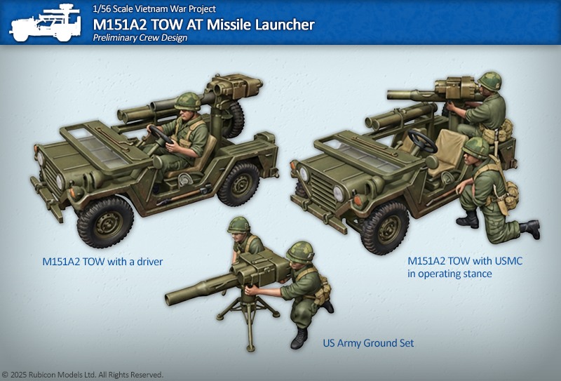 This includes preliminary sculpts of a driver, US Army ground crew, and USMC TOW crew for the M151A2 TOW project.