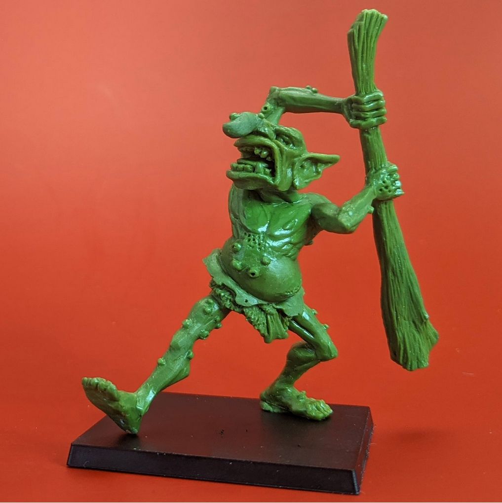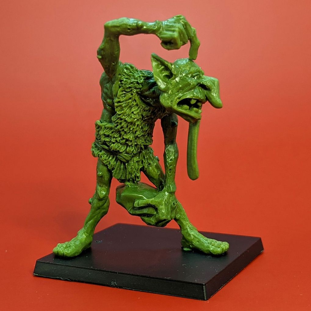 This is our Hill Troll Grobna the Maw. He’s designed to fit a 40mm base, is cast in classic white metal, and stands roughly 50mm high.