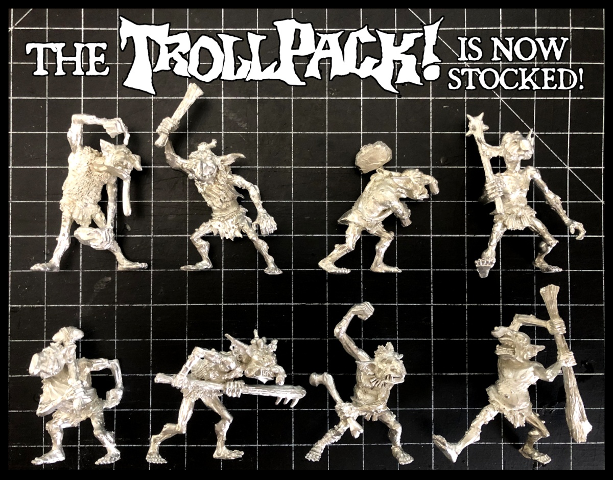 This is the sum of our Hill Trolls series. All eight (8) individual Trolls in one discounted set. Designed to fit 40mm bases, standing roughly 50mm high, and cast using half a pound of classic metal! .