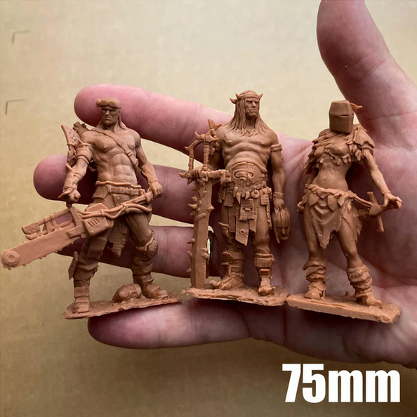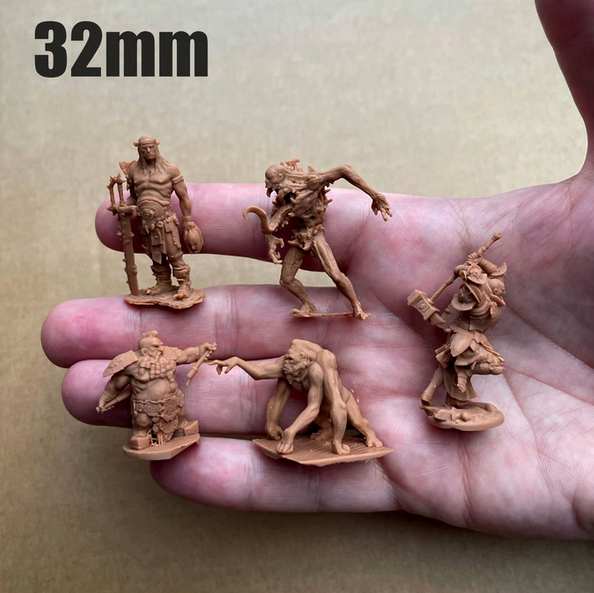 All the photos of test prints you see here are tests. I will still refine the final models and, I hope, add proper bases. The STL files that supporters will receive will allow printing in sizes ranging from 28 mm to about 75–100 mm — that’s the scale I’ve printed so far.